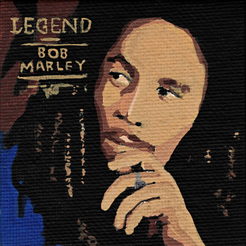 I use high-quality acrylics to paint album covers onto 3"×3" mini canvas panels—which are about the size of a Post-it® note.